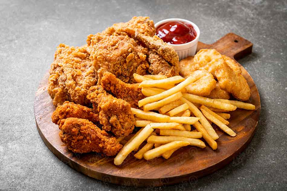 ۱۵۰ گرم گوشت راسته +سس مخصوص +پنیر گودا+۸۰ گرم مرغ سوخاری