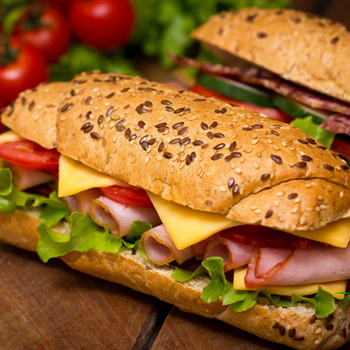 نان چیاباتا تست شده + ژامبون +پنیر پیتزا + قارچ + فلفل دلمه ای
